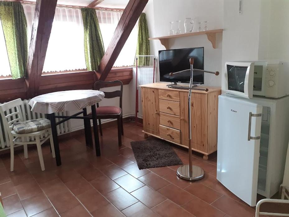 Triple Room. The triple room provides a carpeted floor and heating, as well as a private bathroom featuring a bath. Guests can make meals in the kitchenette that comes with a refrigerator, kitchenware, a microwave and a tea and coffee maker. This triple room features a flat-screen TV. The unit offers 3 beds. ;